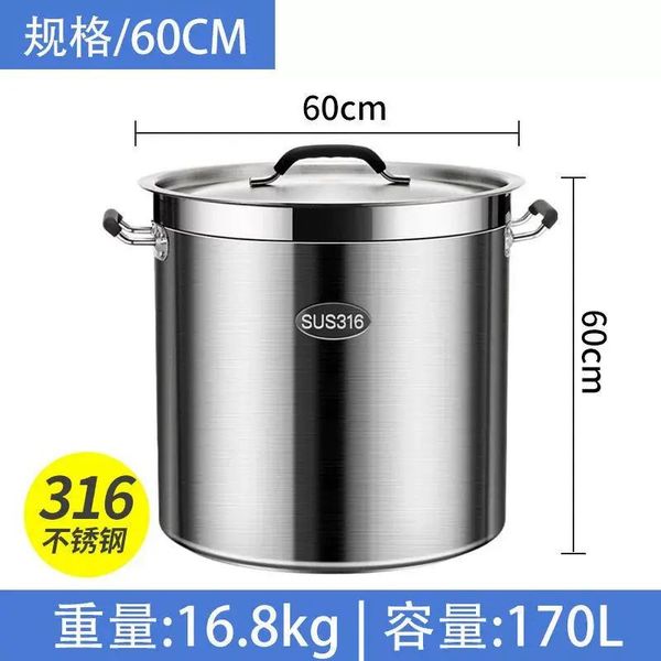 316不锈钢汤桶圆桶带盖商用卤肉烧水桶炖锅大容量储油加厚大汤锅;;颜色分类:60cm*60cm/170L【特厚316钢】 316汤桶