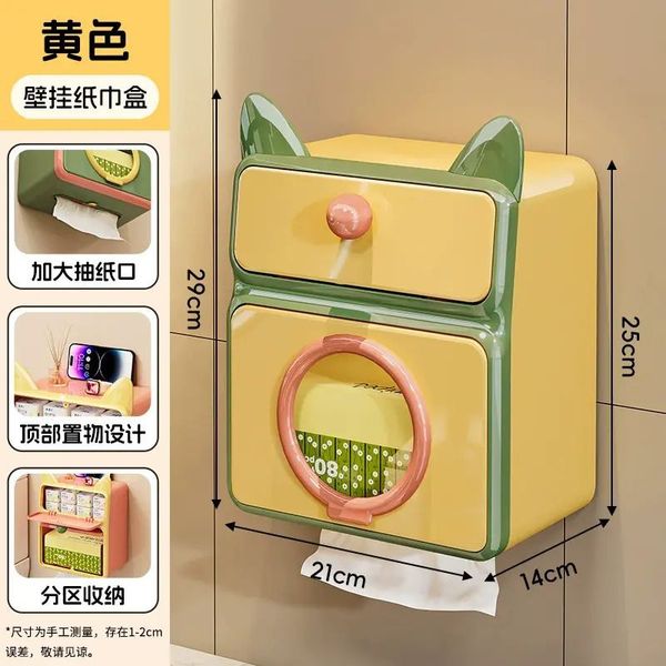 壁挂纸巾盒卫生间置物架感抽纸盒简约家用餐巾纸卷纸收纳盒;;颜色分类:柠檬黄