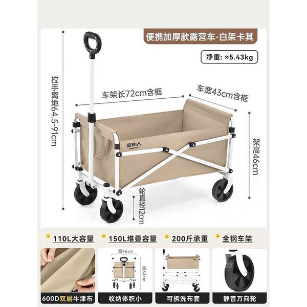 折疊購物車露營車【輕便款 白架子卡其色】折疊買餸車 家用購物手拉車 戶外露營 車尾箱摺車 買餸車 手推車 戶外營地車 露營小拖車 可折疊 輕便攜帶 釣魚擺攤拉車 野餐車 戶外拉車