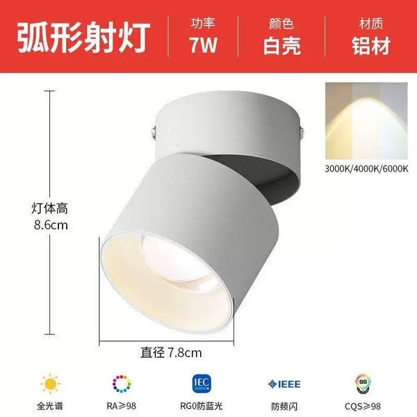明装可调角度网红彩虹小山丘免开孔射灯客厅家用洗墙走廊过道筒灯;护眼全光谱98显【可旋转折叠】7W
