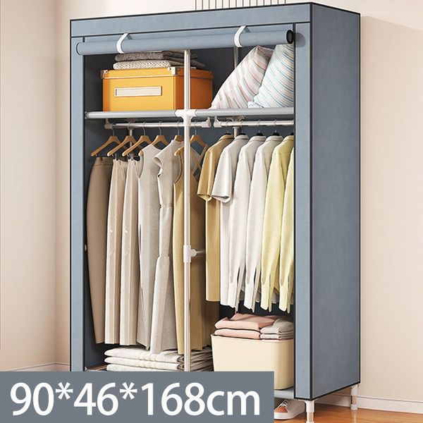 單人簡易布衣櫃 落地式掛衣架衣帽架 多功能衣櫥連布套 傢俬 簡易布藝衣架置物架【不包安裝】90cm 2掛+2格