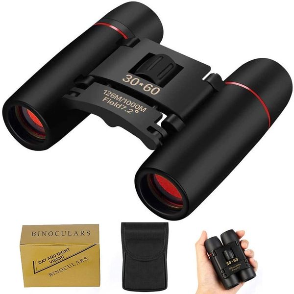 折叠双筒望远镜,30*60 高分辨率便携式迷你望远镜,带中心焦点和屈光度调节,儿童礼物,高清双筒望远镜玩具,适合户外远足露营