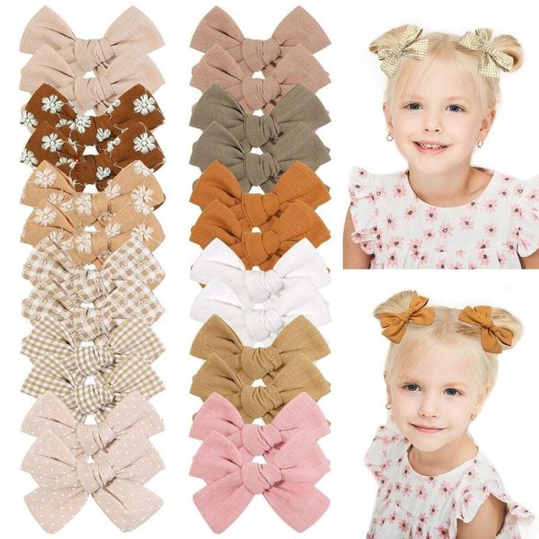 24件套儿童蝴蝶结 - 发夹纯色绣花手工全包夹鸭嘴夹发饰 适合女童 幼儿成对使用