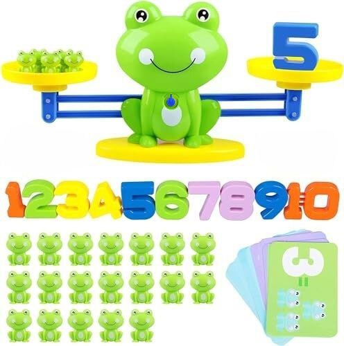 警告:本产品请在成人监督下玩耍注意:配件颜色随机,介意勿拍儿童数字介绍:这款平衡游戏套装有助于引入数数、数字识别和加法概念。学习数学如孩子玩耍:平衡游戏套装有助于提高孩子们的数学技能。它让学习变得有趣,但却没有意识到它的学习太多。3 级学习:从容易到困难的学习:第 1 级:数字重整(简单难度);2 级:计数(中等难度);3 级:加法公式(复杂难度)。盒子里有什么?青蛙平衡套装共包括 63 件配件! [1 个青蛙平衡],[1 个底座],[2 个称重板],[19 个青蛙公仔],[ 30 张双面抽认卡],[10 个加重数字]理想的礼物:这款数学天平将是一个很棒的生日礼物或圣诞礼物送给你的孩子。