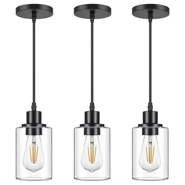 3件工业风吊灯,现代透明玻璃灯罩吊灯照明,黑色吊灯灯具天花板灯,农舍风格厨房岛、走廊、门廊、卧室适用,3包装(不含灯泡)