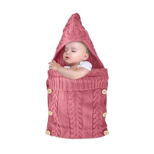 婴儿包被 | 毛线针织婴儿睡袋两侧可打开纽扣户外推车婴儿睡袋 睡袋包巾 安全舒适婴儿包被 安全感宝宝包巾 懒人包巾 婴儿包被 - 粉色