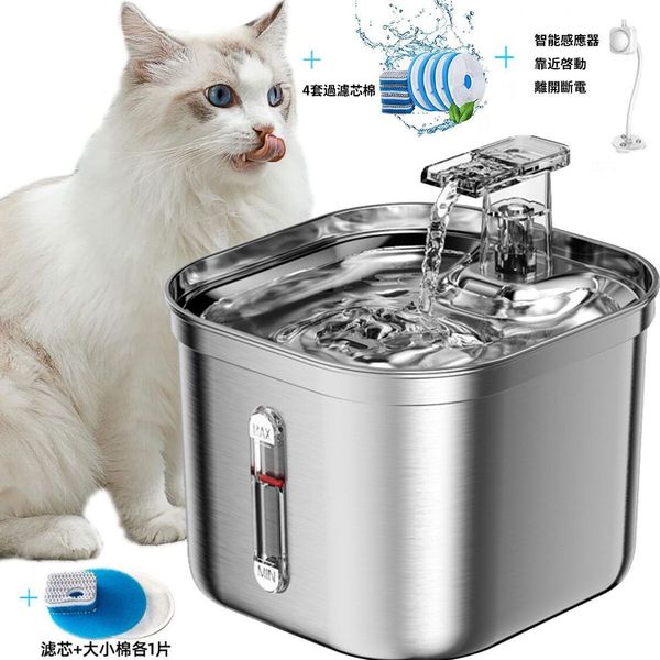 智能静音感应不锈钢宠物饮水机套装(附4套过滤芯棉)|猫狗饮水机|过滤宠物饮水机|2.2 公升不锈钢宠物喷泉猫狗饮水机 | 不锈钢机身 宠物饮水机 | 猫咪饮水机 | 狗饮水机