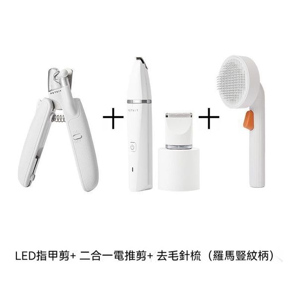 PETKIT - 3件套宠物美容用品 | 二合一宠物电推剪+LED 宠物指甲剪+ 宠物去毛针梳 | 猫狗用 宠物美容美发 | 宠物电剃毛器 宠物修剪毛器 | 宠物梳子 一键除毛 | 猫狗通用指甲钳