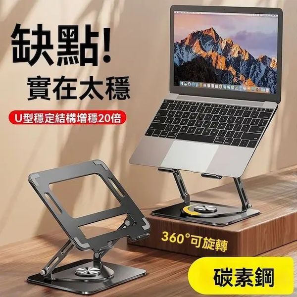 碳钢可360度旋转笔记本电脑支架可折叠调节升降散热增高架-折叠款-黑色【碳钢】