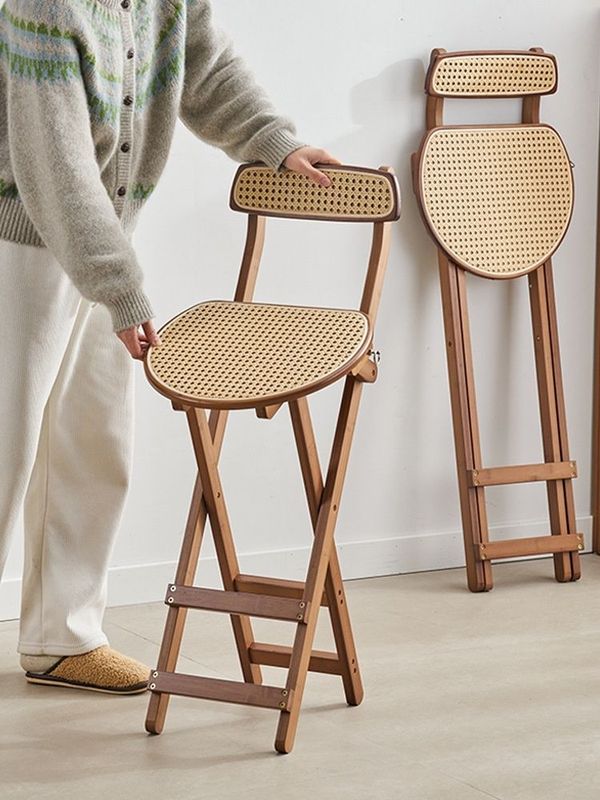 这款便携式高脚凳,适用于咖啡厅、收银台和吧台,同时也非常适合家庭使用。它结实耐用,适合成人,提供舒适坐感。小巧的折叠设计便于携带。采用编织藤条制成,美观实用,茶色款式,营造温馨氛围。