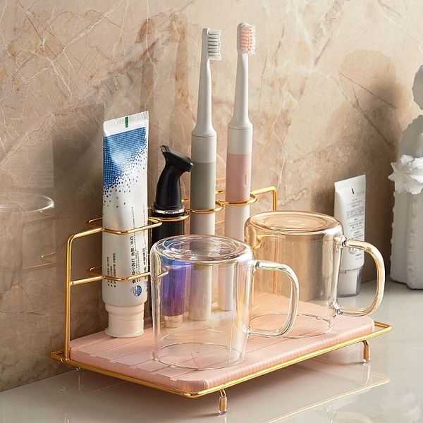 注意:收纳架为粉色垫+金色牙刷架金色牙刷架由不锈钢制成,配有硅藻土干燥垫,快速吸水,保持电动牙刷和浴室杯干燥和清洁。不锈钢牙刷架带4个槽,收纳电动牙刷,牙膏,牙刷杯,剃须刀,洁面乳等。牙刷架可用于浴室、淋浴间、陈列室、厨房、娱乐车、野营、洗手间作为小柜台收纳盒。牙刷架四支腿上配有防滑硅胶套,可以有效防止滑动。 凸起的底座架允许气流保持台面干燥和清洁。硅藻土吸收石可拆卸,易于取出,用自来水清洗,然后用砂纸擦拭,然后自然晾干。