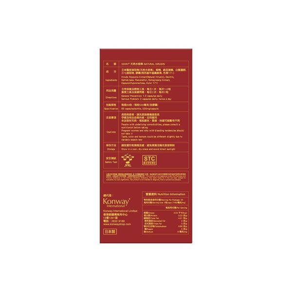 * 產品獲 JFRL (日本食品分析中心)及 STC 認證,信心之選