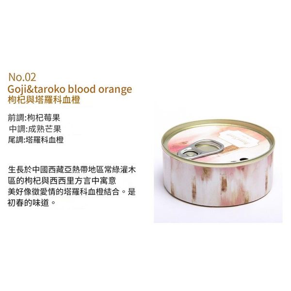 尾調(Base Notes):塔羅科血橙|西西里塔羅科血橙的清新酸甜收尾,寓意美好愛情,整體是初春的清新活潑感,適合早晨或客廳使用。
