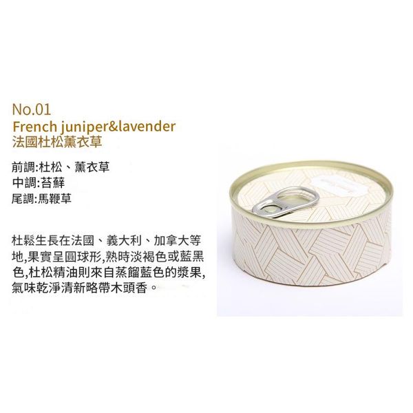 前調(Top Notes):杜松、薰衣草|法國進口杜松的清新木質香,搭配薰衣草的寧靜草本味,一開蓋就感受到滿滿放鬆感,好似走進法國鄉間的薰衣草田,清涼又治愈;