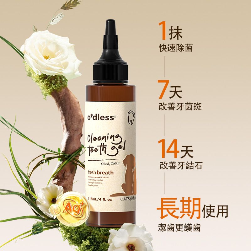 O'dless 寵物潔牙凝膠將是您的潔齒水升級首選。這款專業口腔護理產品,利用凝膠的高附著特性,能比液體更長時間停留在牙齦上,為不愛刷牙的犬貓提供全天候的口腔防護。