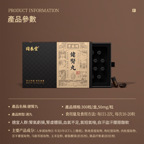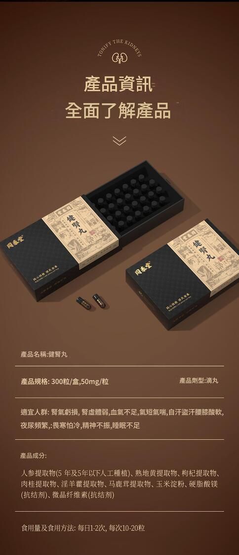 同泰堂 健腎丸 香港製造 濃縮精華・長效滋養|益精填髓・扶正固本|重振活力・緩解疲勞|科學配方 滋養身體 提高續航能力 激發欲望