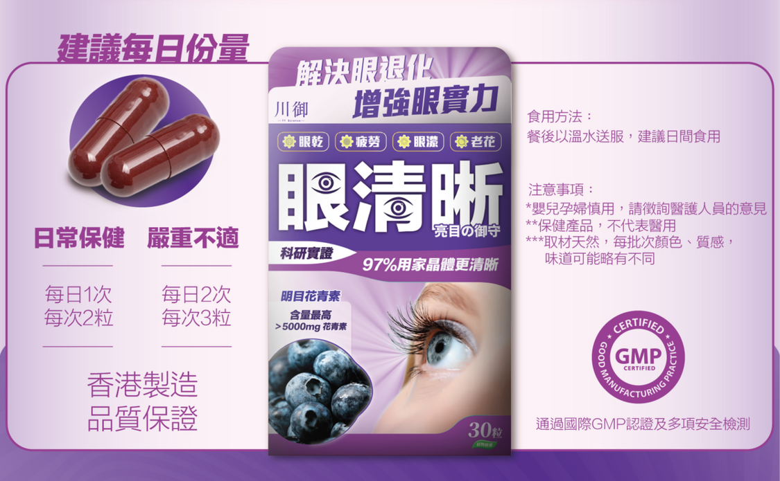 川御 眼清晰 花青素 (30粒裝)|葉黃素|玉米黃質|視力健康|眼部保健品|補充品|健康食品|營養補充劑|膳食補充劑|眼睛健康 亮目の御守