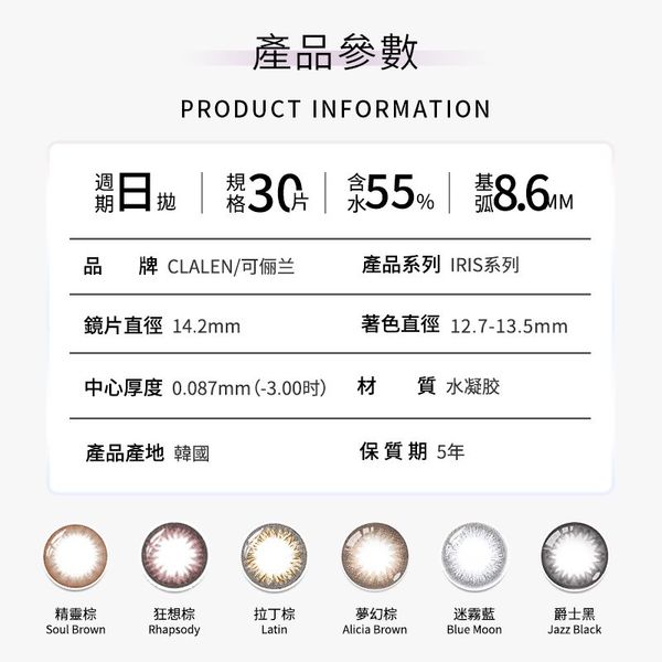 Clalen-Clalen iris系列 彩色隱形眼鏡 日拋30片/裝(拉丁棕)-5.25