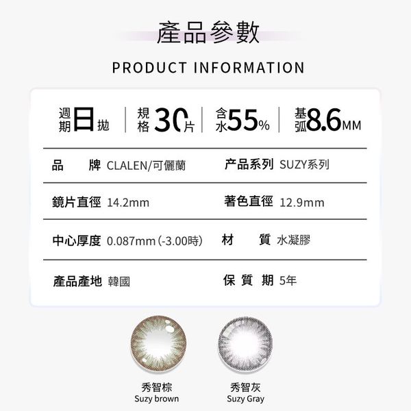 顏色:Suzy Gray(秀智灰)、Suzy Brown(秀智棕)