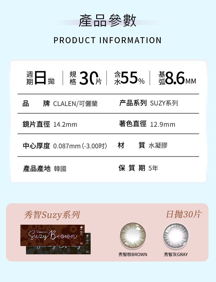Clalen-Clalen iris系列 彩色隱形眼鏡(秀智灰)日拋30片/裝 -1.25