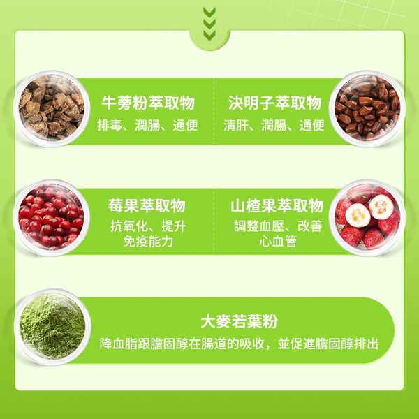 水、D-山梨醇、難消化性麥芽糊精、果糖、綜合莓濃縮汁(蘋果、蔓越莓、草莓、覆盆莓、櫻桃、黑醋栗、醋栗)、香料、鳳梨精華、綜合蔬果發酵濃縮粉(綜合蔬果發酵濃縮粉(鳳梨、青木瓜、火龍果、番石榴、酪梨、梨子、甜菜根、山藥、蘋果、葡萄、番茄、奇異果、哈密瓜、檸檬、橘子、柳橙、金桔、葡萄柚、香蕉、紅石榴、百香果、諾麗果、草莓、紅棗、櫻桃、藍莓、桑葚、楊桃、蓮霧、西瓜、甜瓜、龍眼、荔枝、桃子、李子、梅子、蜜棗、柿子、枇杷、杏仁、紅甘蔗、青花菜、芥藍、美國芹菜、秋葵、苜蓿芽、甜椒、紅鳳菜、絲瓜、山苦瓜、黑豆、紅豆、綠豆、碗豆、南瓜、胡蘿蔔、薑、牛蒡、地瓜、芋、蓮藕、黑木耳、香菇、金針菇、猴頭菇、舞茸、黑糖、二砂)、竹筍纖維、阿拉伯膠、D-木糖醇、二氧化硅、青木瓜精華)、決明子萃取、角豆膠、檸檬酸鈉、鹿角菜膠、蒟蒻粉、綜合莓果精華(巴西莓、藍莓、蔓越莓、石榴、覆盆莓、草莓、西印度櫻桃、黑莓、山竹果、智利酒果、枸杞、葡萄種子)、檸檬酸、DL-蘋果酸、氯化鉀、山楂果萃取、牛蒡精華、黃原膠、大麥苗粉、乳酸菌 (Lactobacillus johnsonii)