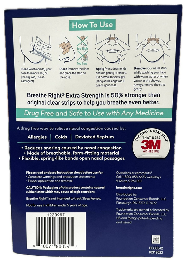72片 Breathe Right 超強效通氣鼻貼 - 透明 適合敏感肌膚 (平行進口)