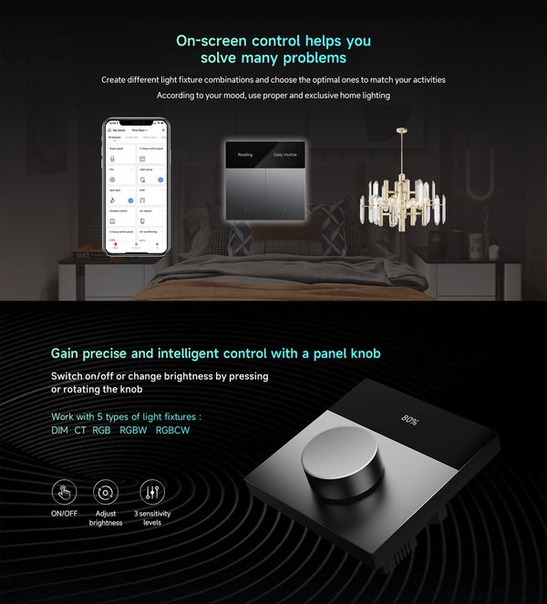 小雷创想系列智能开关远程控制场景联动86型旋钮面板雷特智能家居