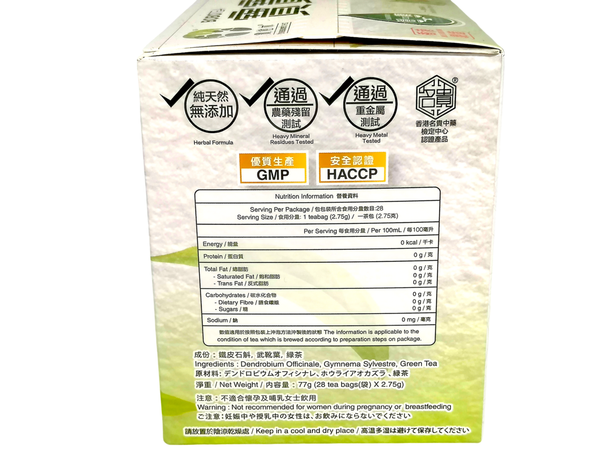 寶寶降糖茶是由高品質純天然草本調配而成的草本茶,有效防止身體吸收過多糖分,減少對糖分的渴望,維持健康體重。內含鐵皮石斛,金奈瑪有機酸(被譽為糖分殺滅者)阻隔人體吸收糖分,綠茶含抗氧成分擊退自由基絶無添加西藥或化學份。