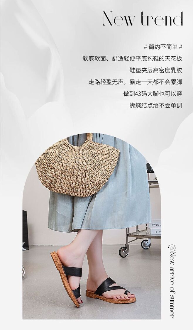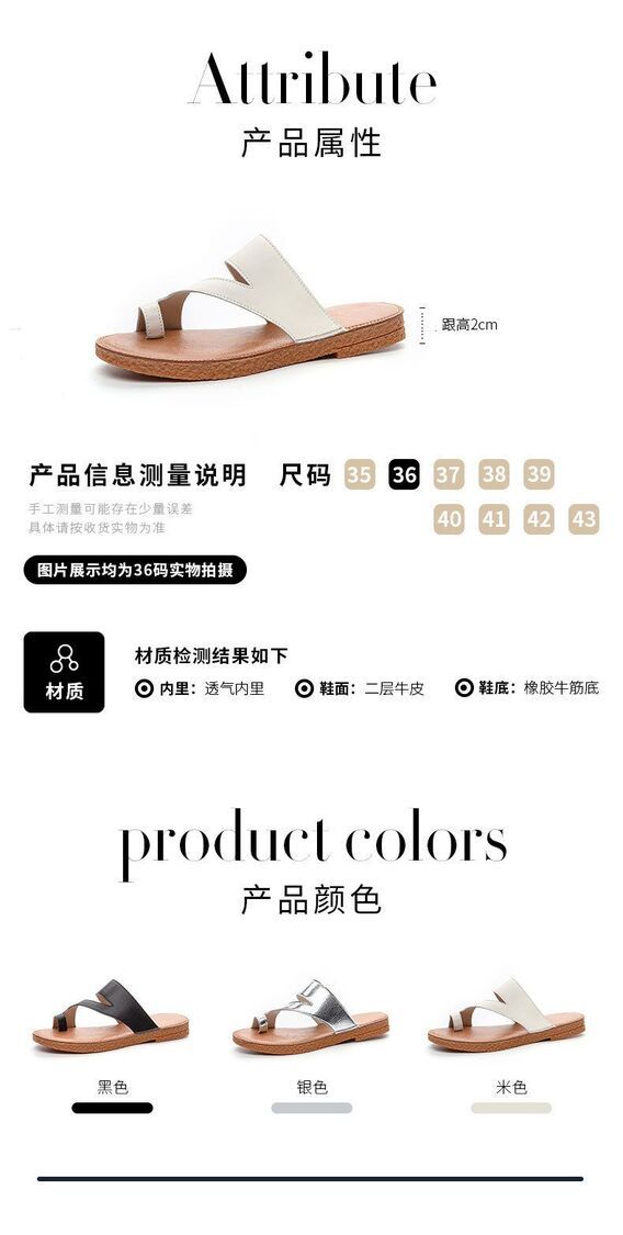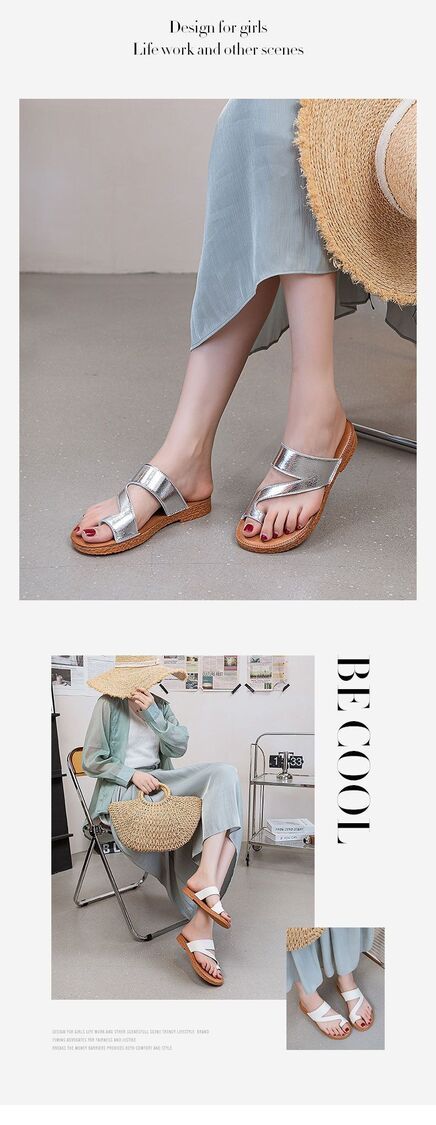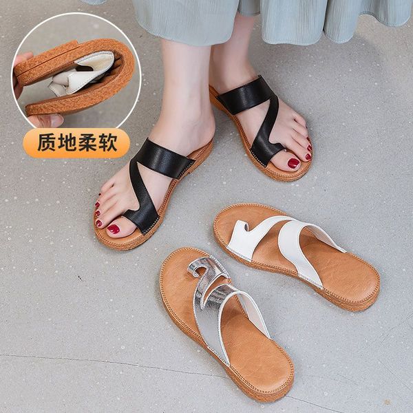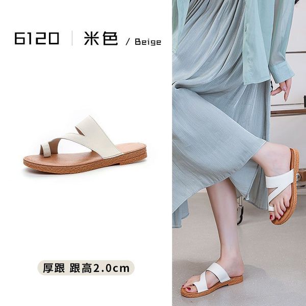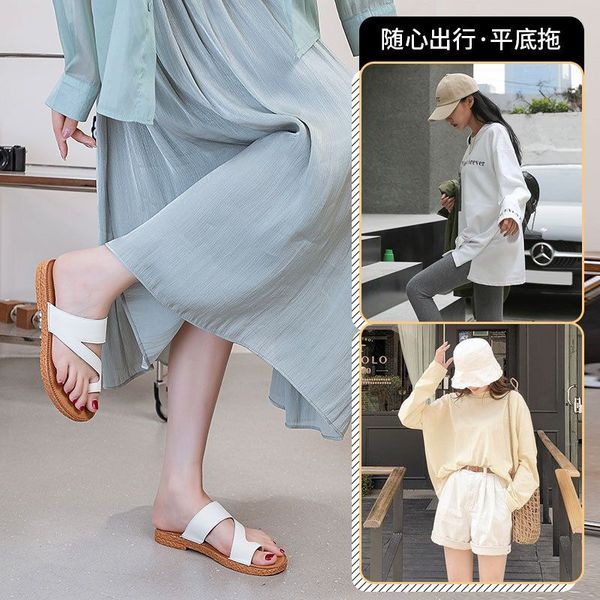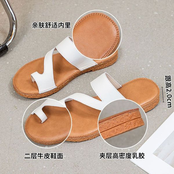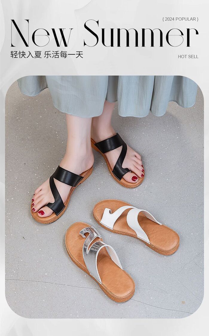 Others-韓版復古套趾拖鞋女夏季外穿時尚百搭平底沙灘羅馬鞋真皮涼拖批發