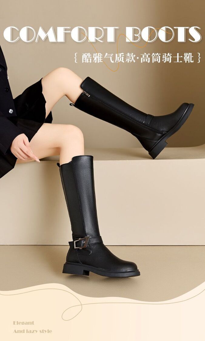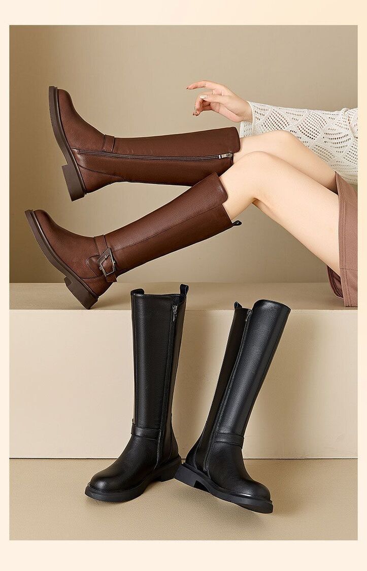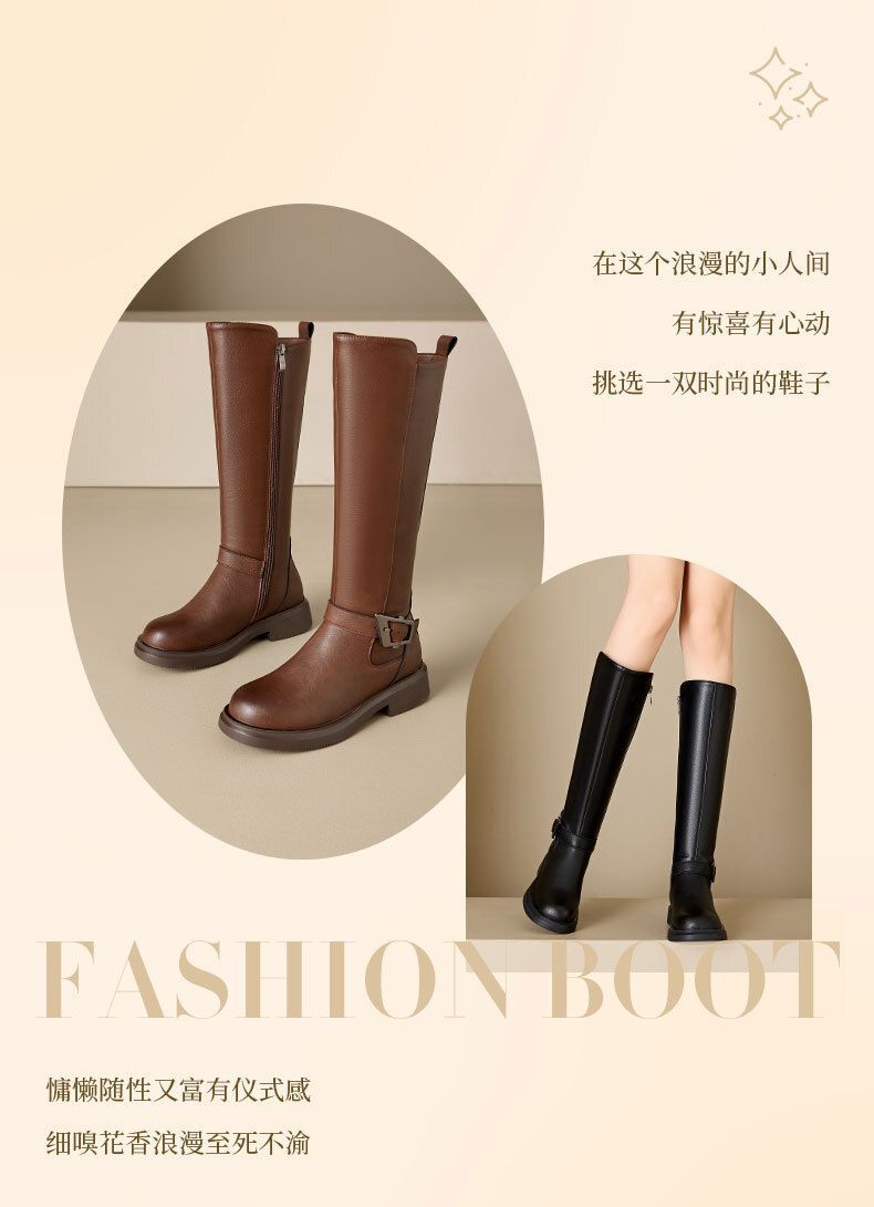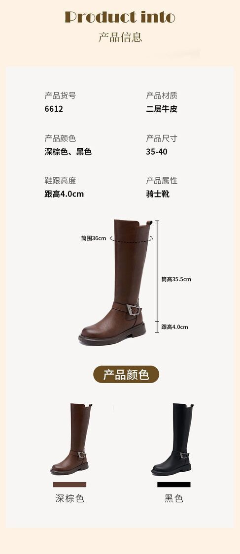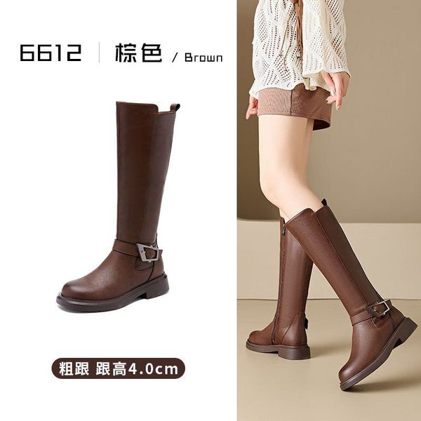 Others-秋冬百搭騎士靴顯瘦西部牛仔長筒靴美拉德厚底棕色女靴子