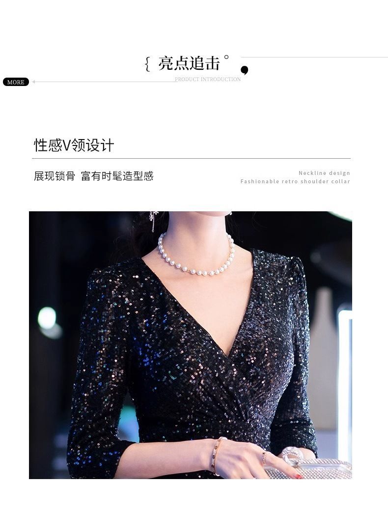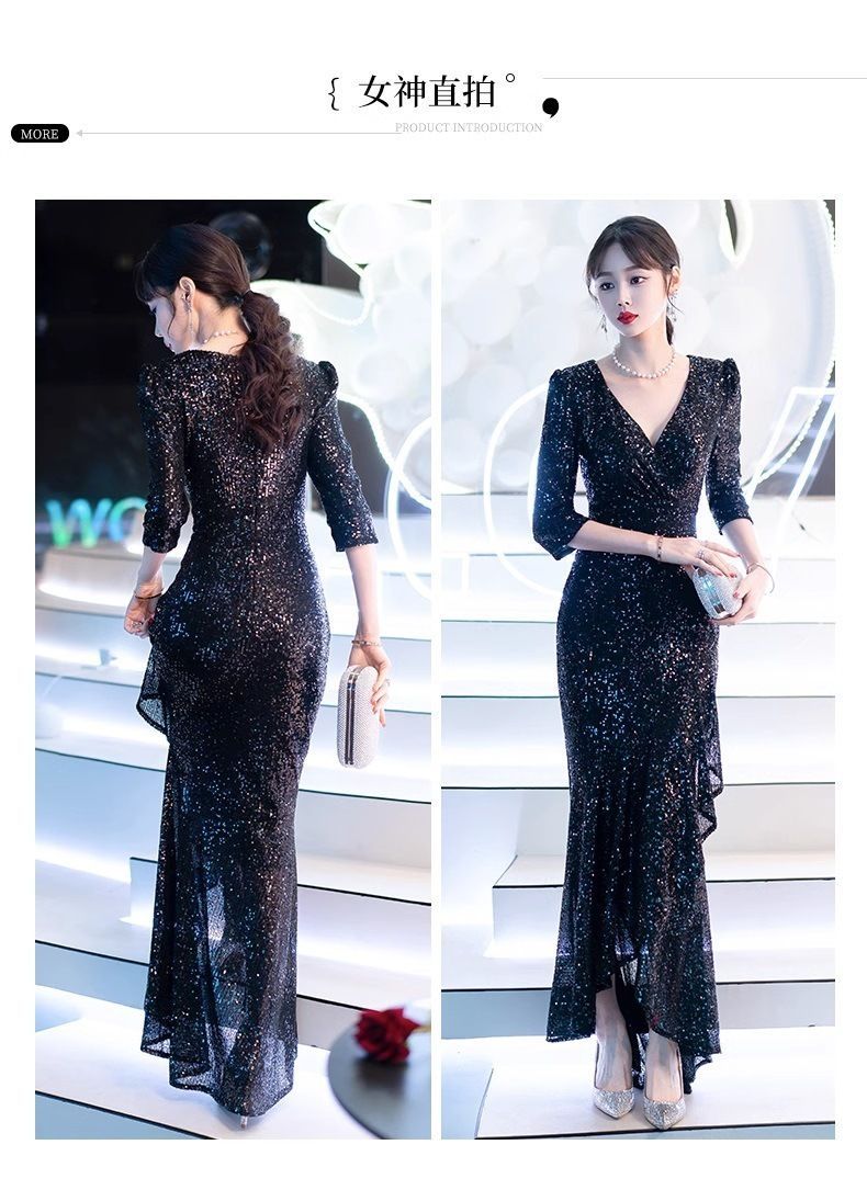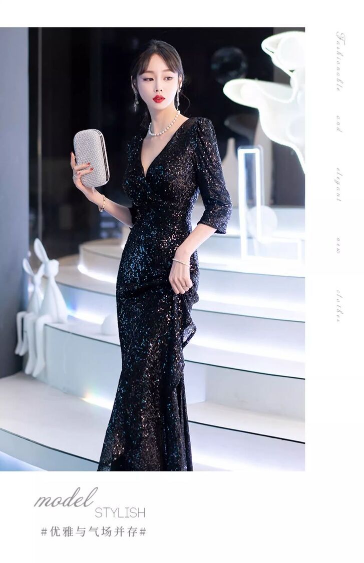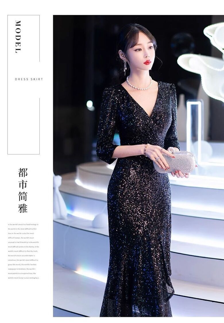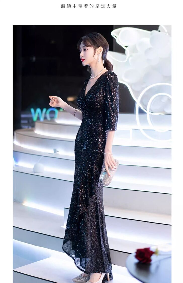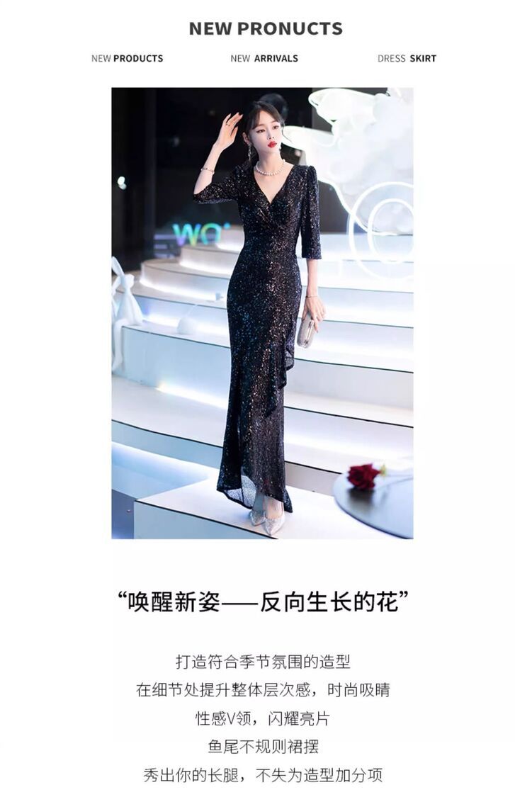 全城熱賣-黑色晚禮服輕奢感小衆女主持人藝考亮片魚尾裙夏伴娘服