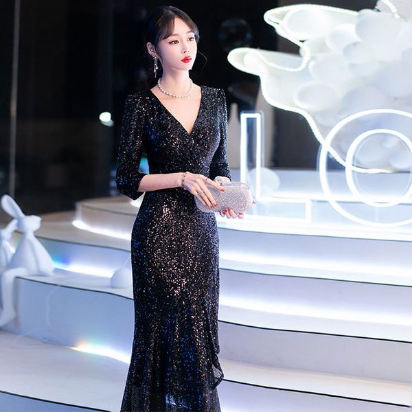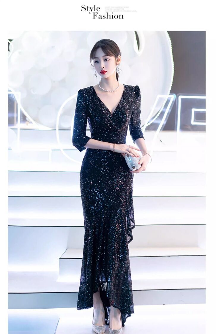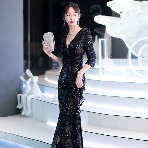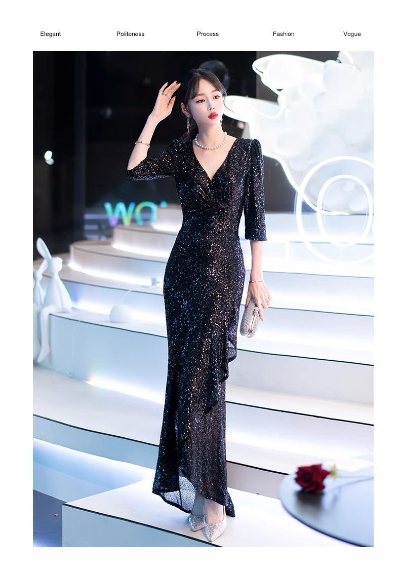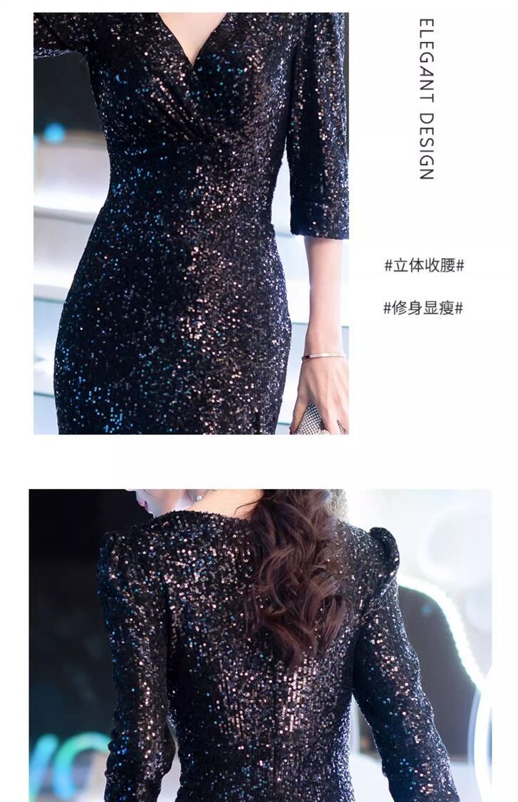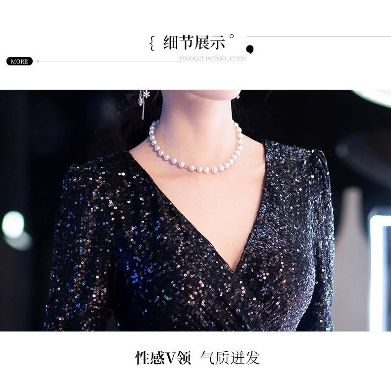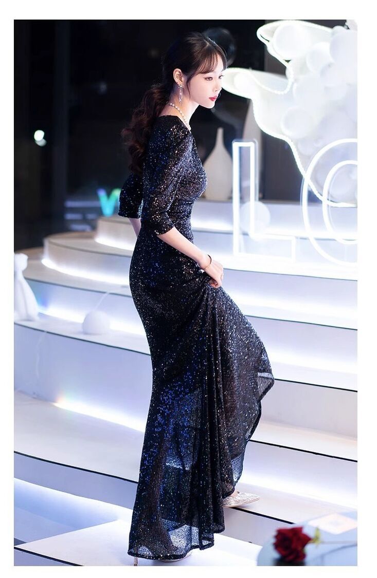 全城熱賣-黑色晚禮服輕奢感小衆女主持人藝考亮片魚尾裙夏伴娘服