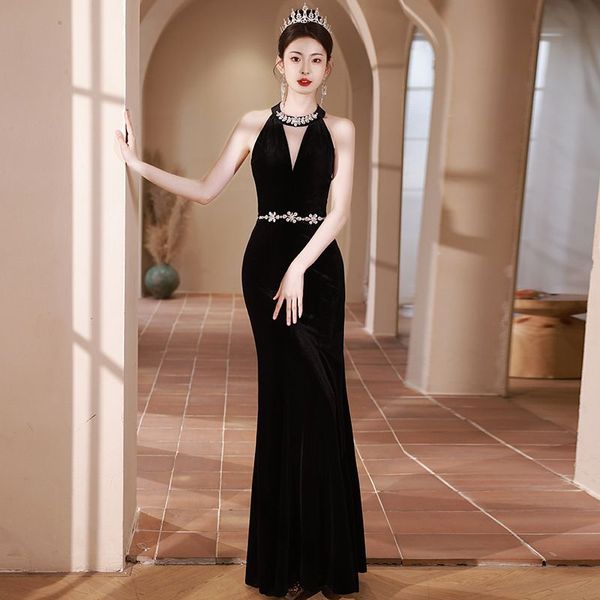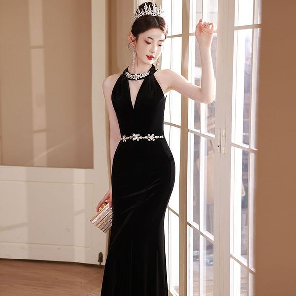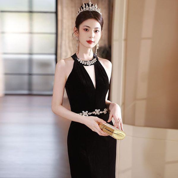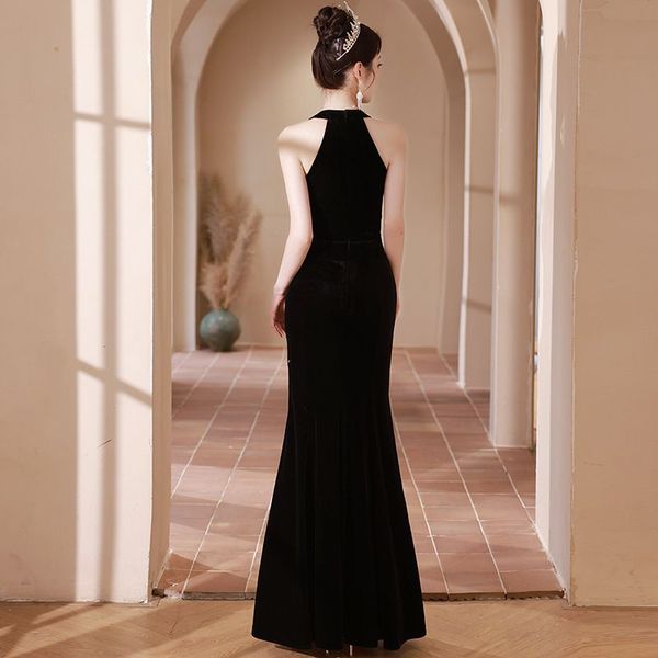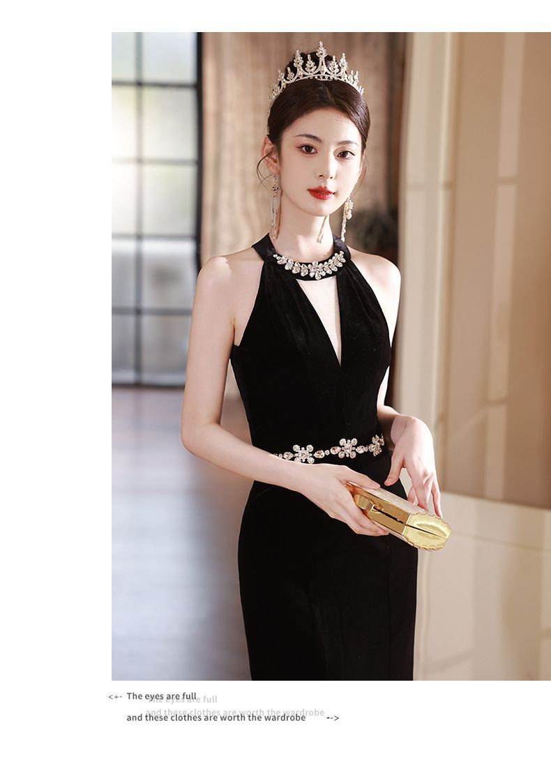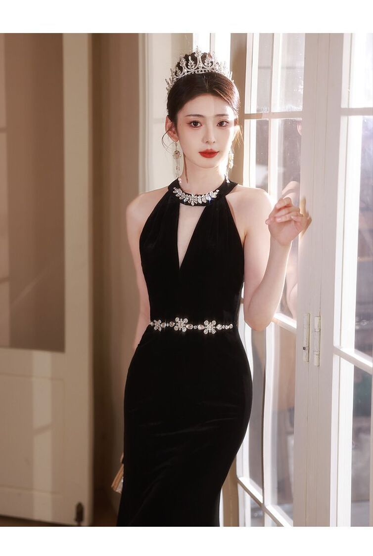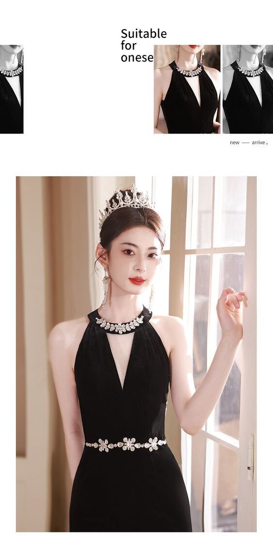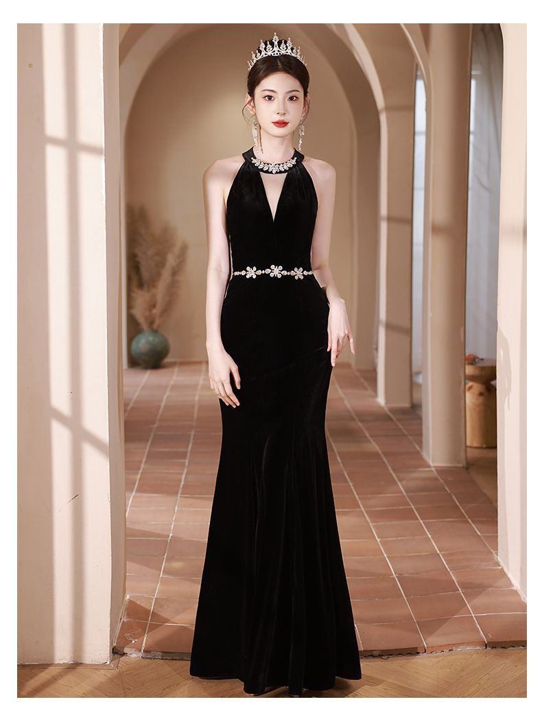 全城熱賣-黑色晚禮服輕奢小衆高端魚尾高級感訂婚修身顯瘦主持裙女