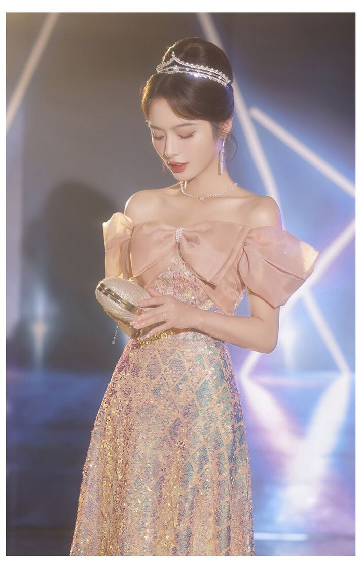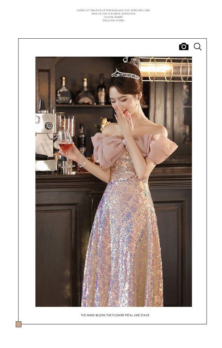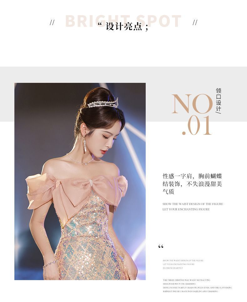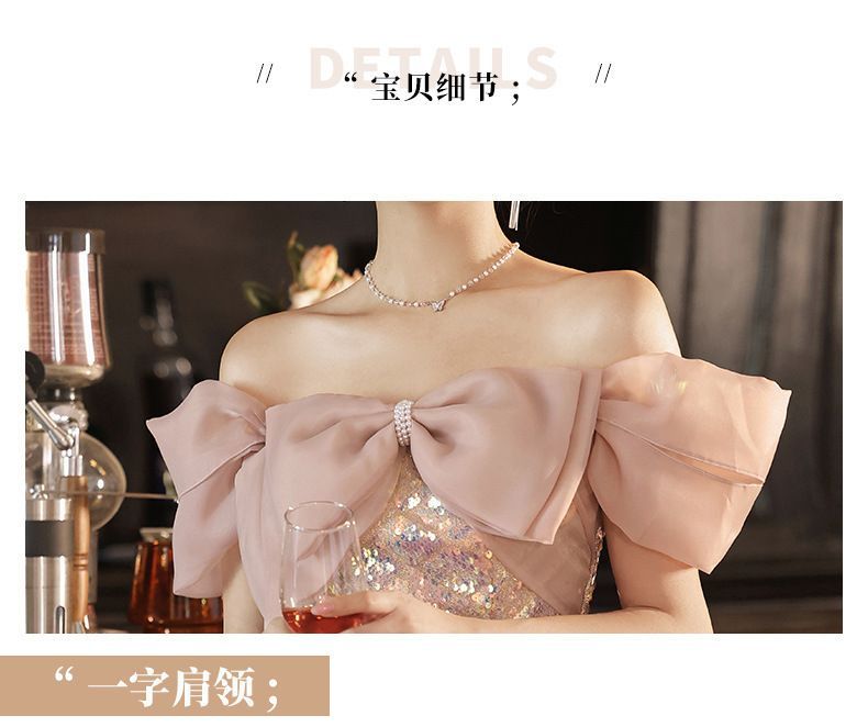 全城熱賣-一字肩晚禮服裙宴會輕奢感小衆輕奢感粉色名媛生日會