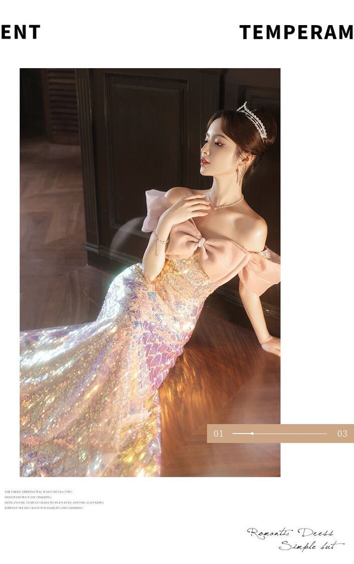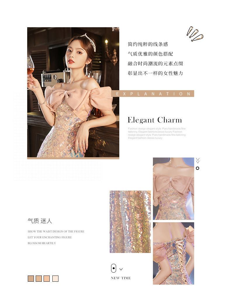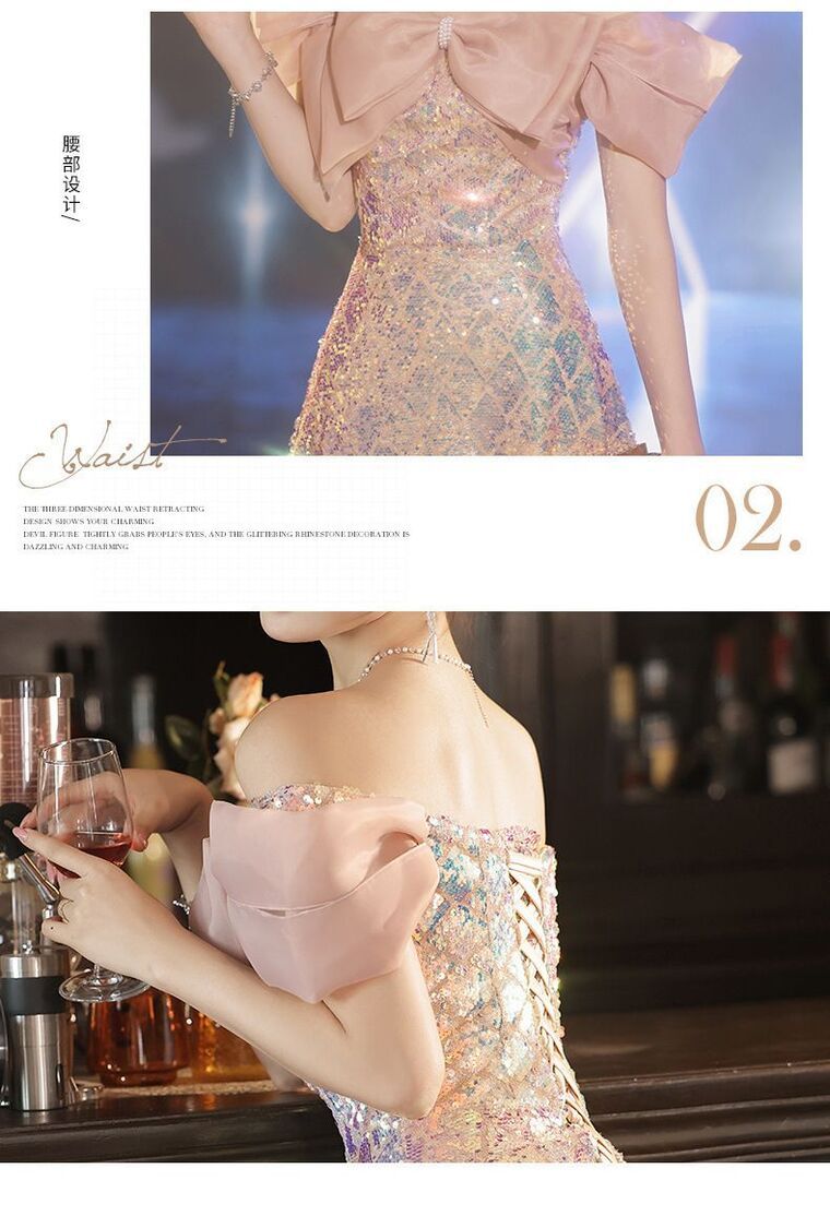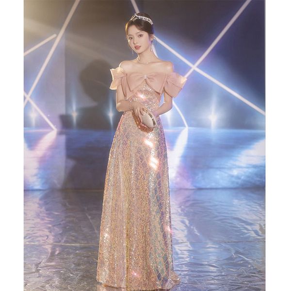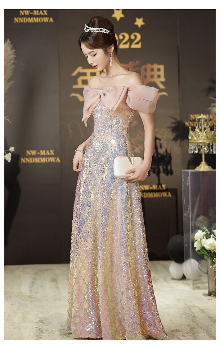全城熱賣-一字肩晚禮服裙宴會輕奢感小衆輕奢感粉色名媛生日會
