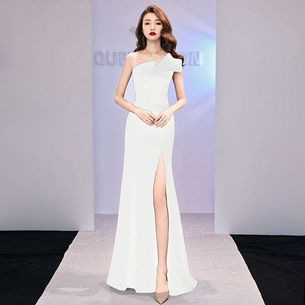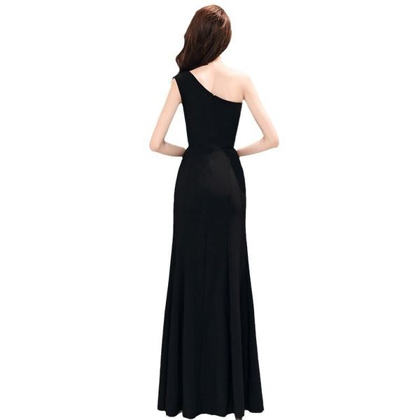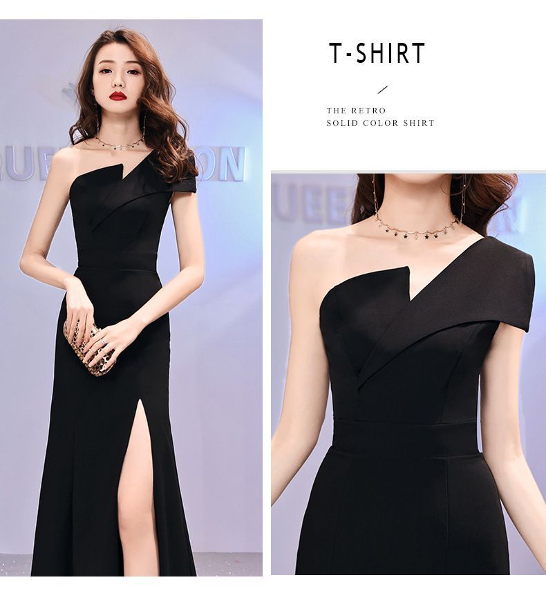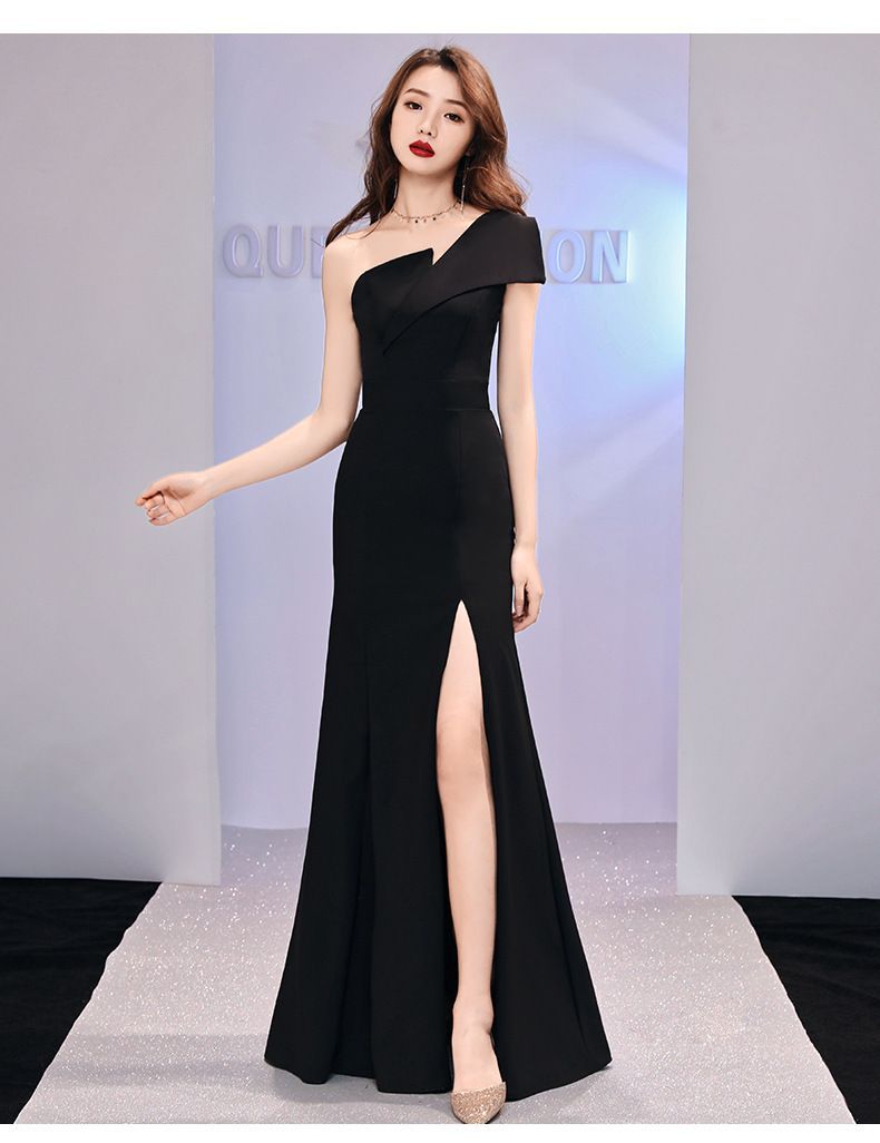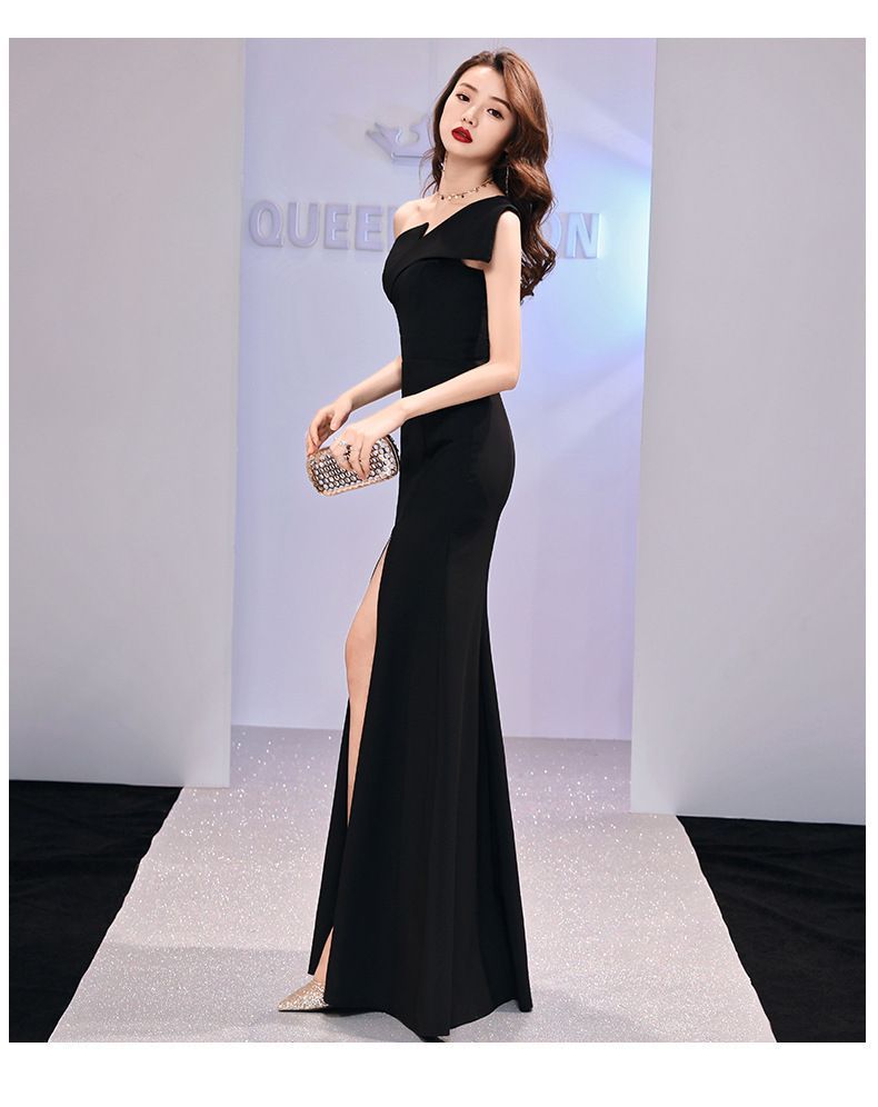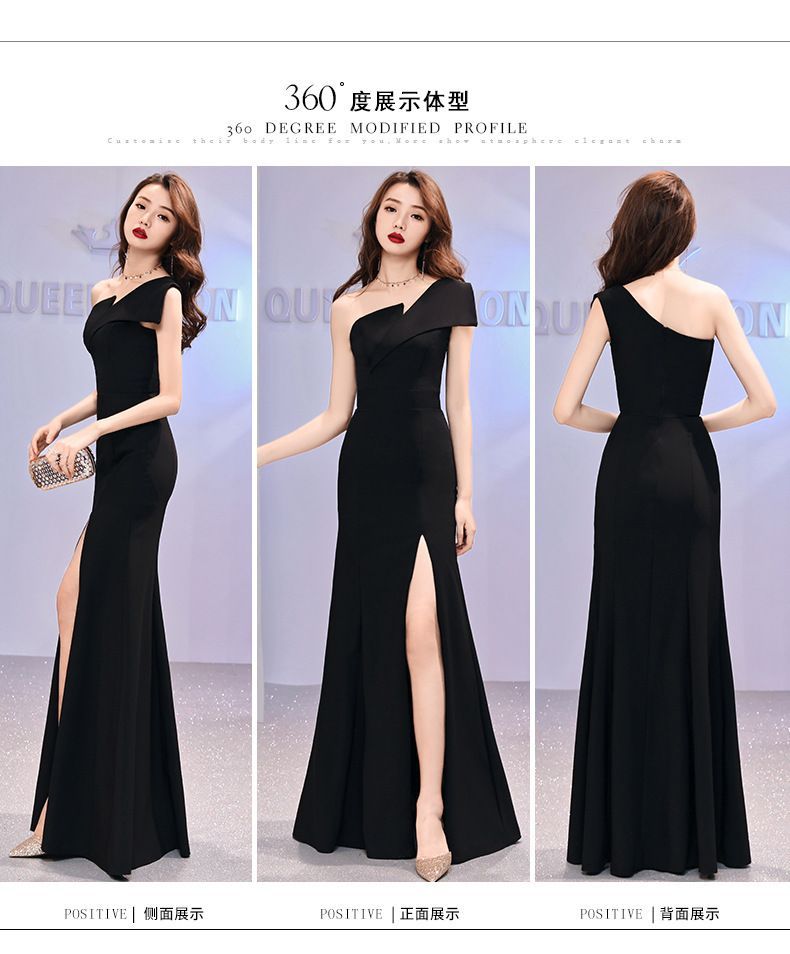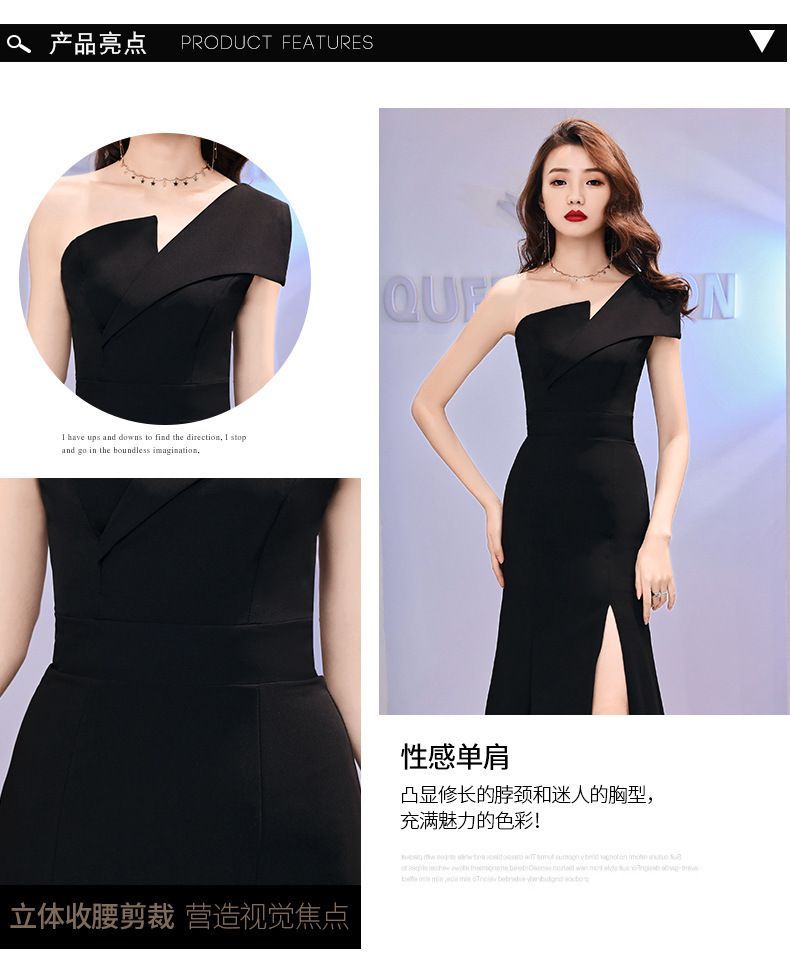 全城熱賣-主持晚禮服裙女宴會單肩無袖魚尾輕奢小衆演出黑色晚禮服
