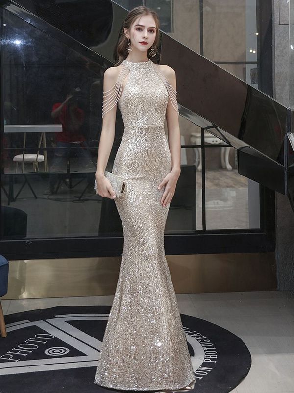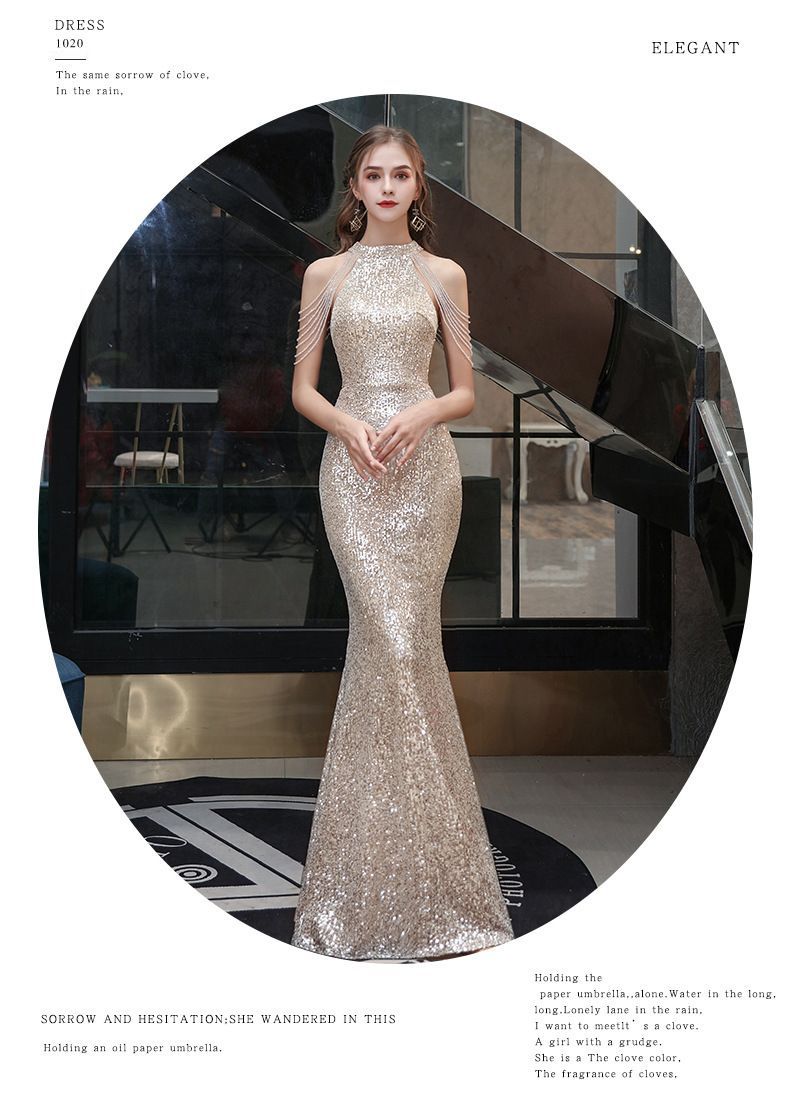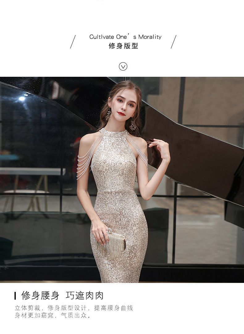 全城熱賣-晚禮服女宴會氣質掛脖長款新客重工魚尾長裙輕奢小衆會禮服