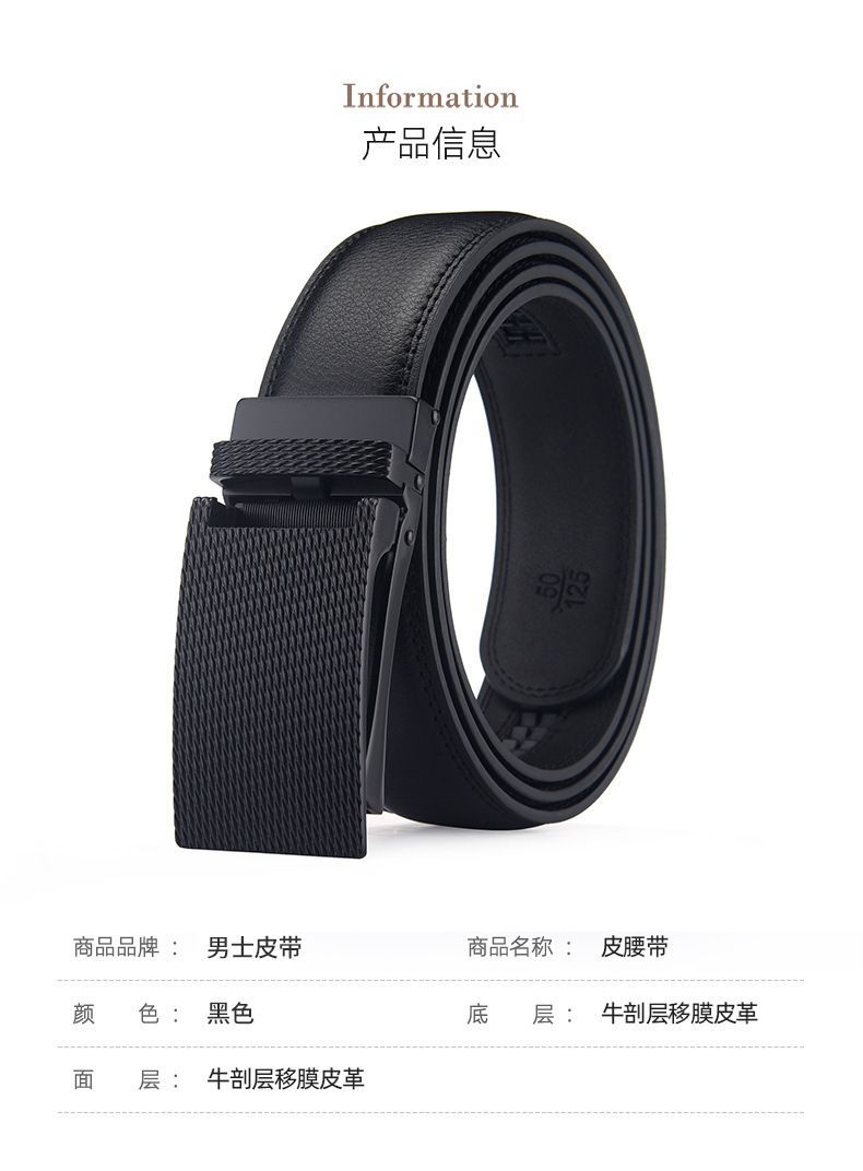 Others-真皮男士褲帶 商務自動扣二層牛皮腰帶 男士新款黑色皮帶