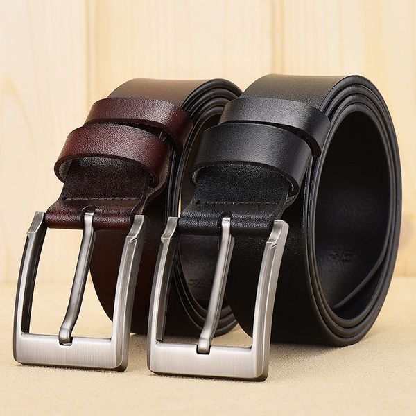 Others-簡約休閒男士皮帶 男士時尚真皮皮帶 男款百搭針扣真皮腰帶寬褲