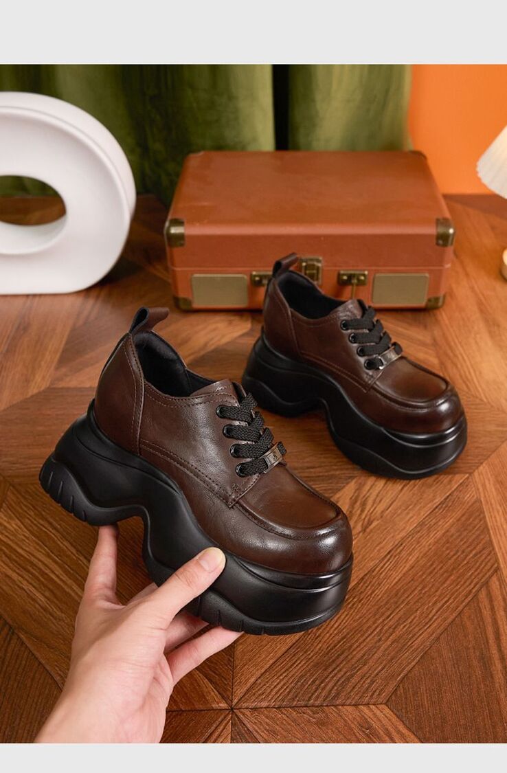 Others-厚底樂福鞋女2025春季新款內增高女鞋時尚松糕百搭黑色英倫小