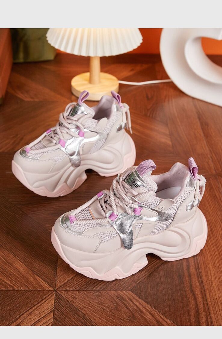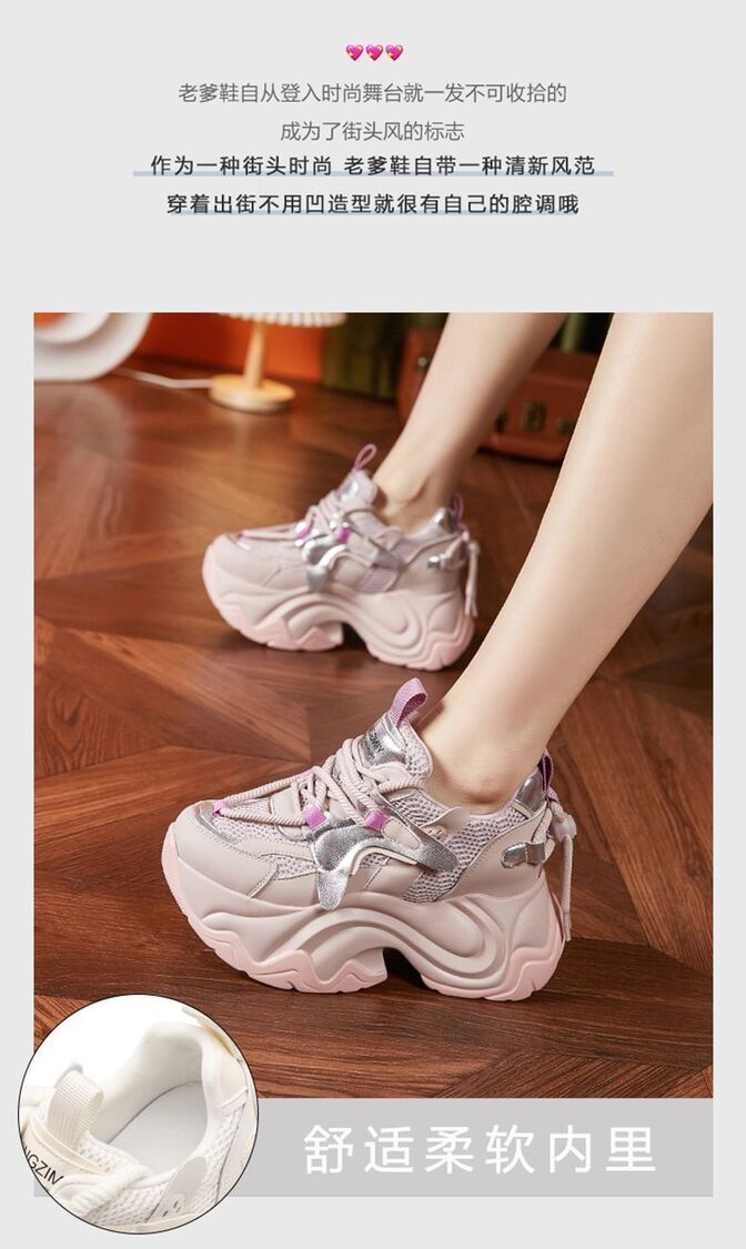 Others-厚底老爹鞋女2025春季新款松糕鞋透氣百搭休閒鞋小個子內增高