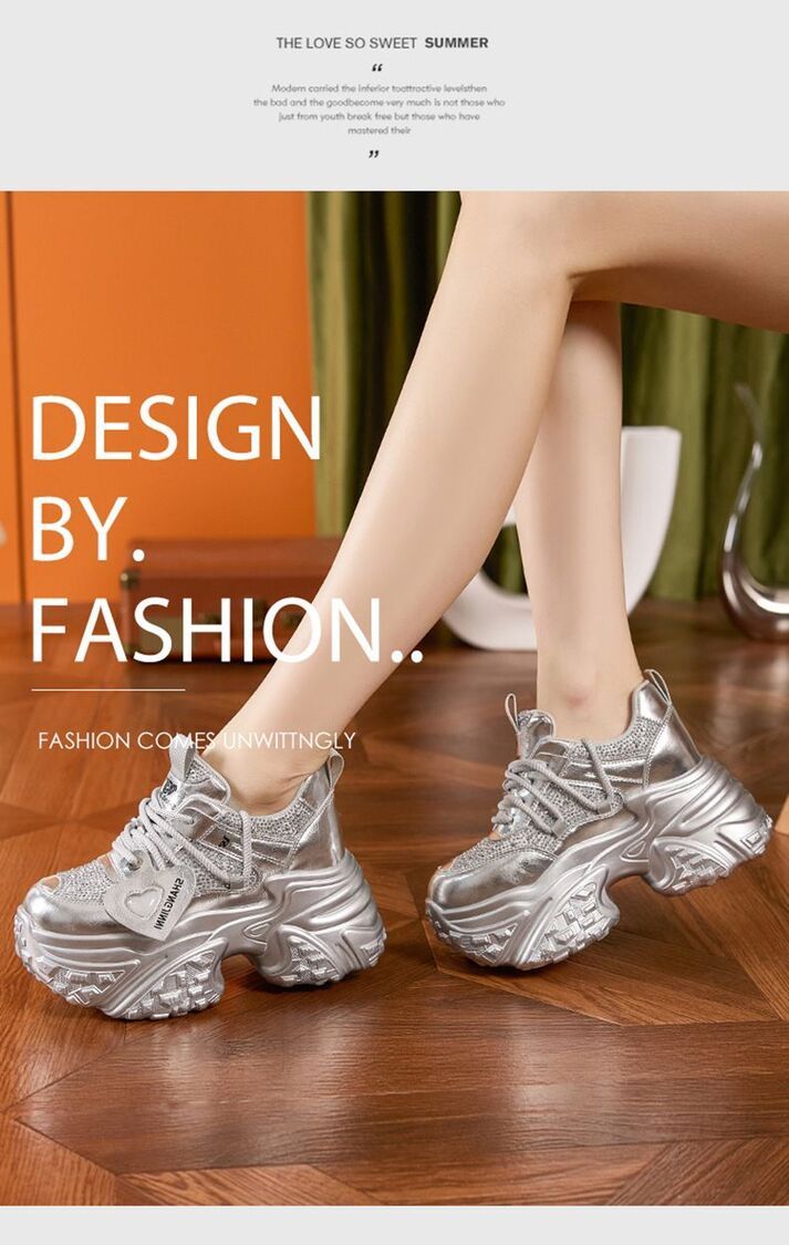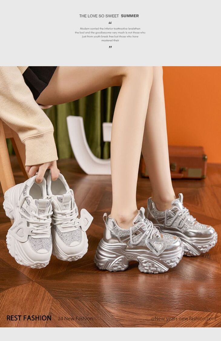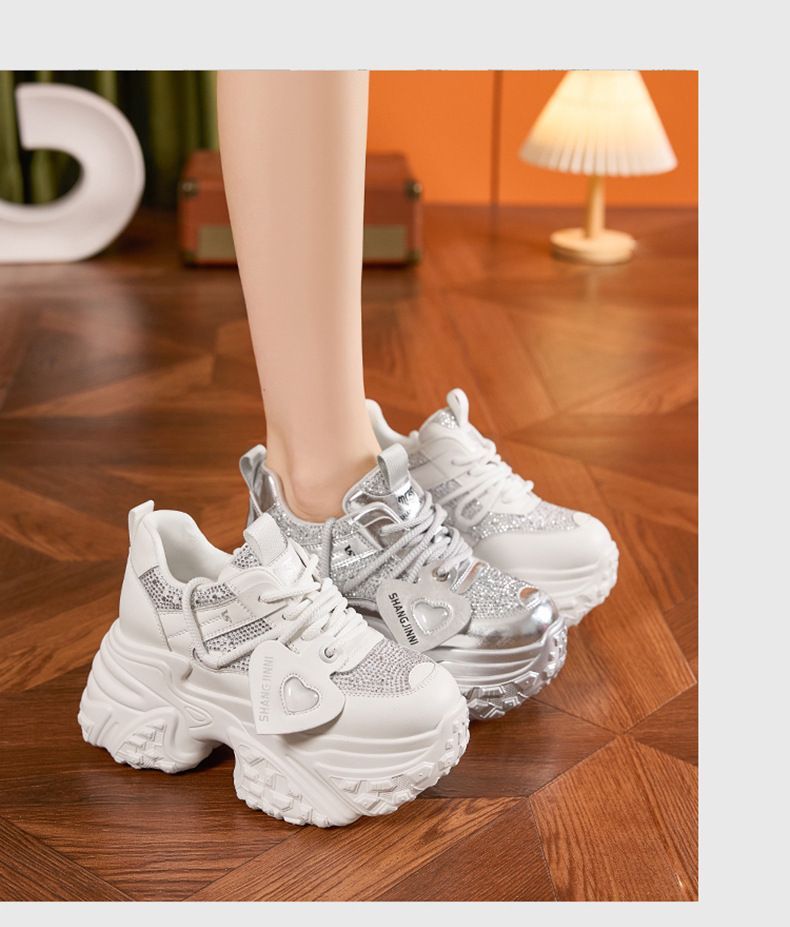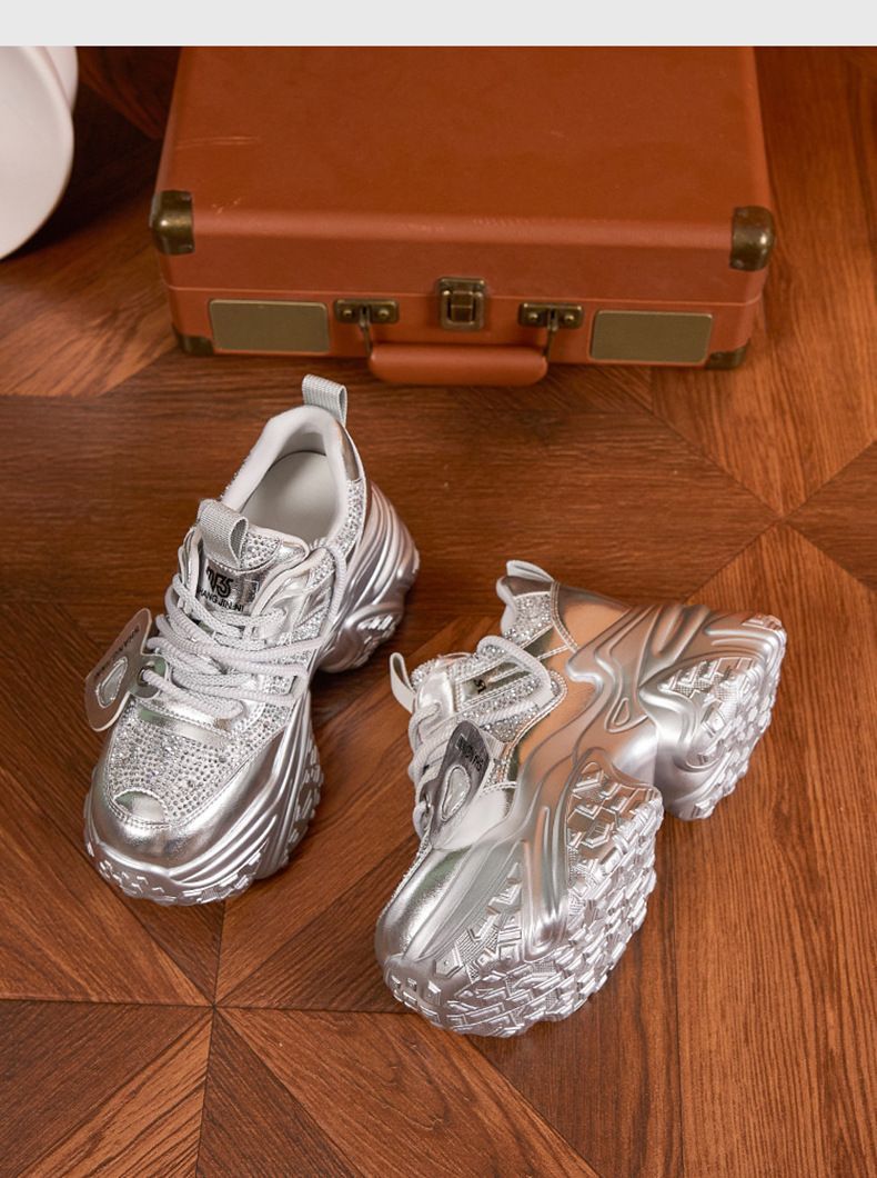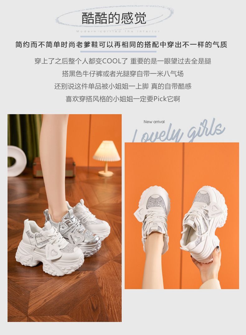 Others-厚底老爹鞋女款2025秋季新款水鑽百搭炸街運動休閒鞋內增高女