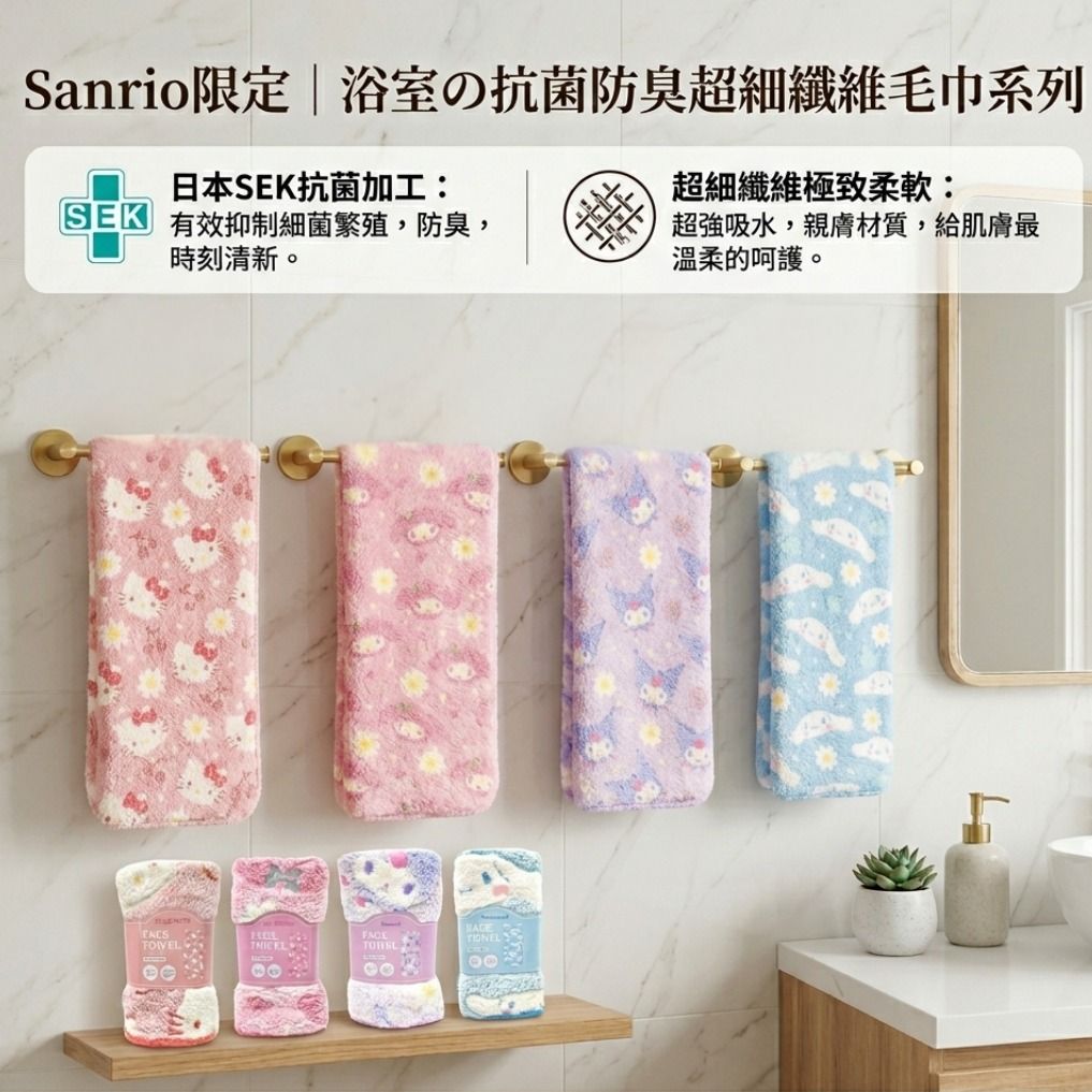 Sanrio-超細纖維純棉長毛巾( SEK抗菌)