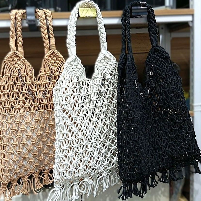 環保手織袋 / 斜孭袋配襯兩條8吋精鋼錬 - 56cm長x37cm闊流蘇款. 53長x37闊.無流蘇. 精緻的手織袋.
